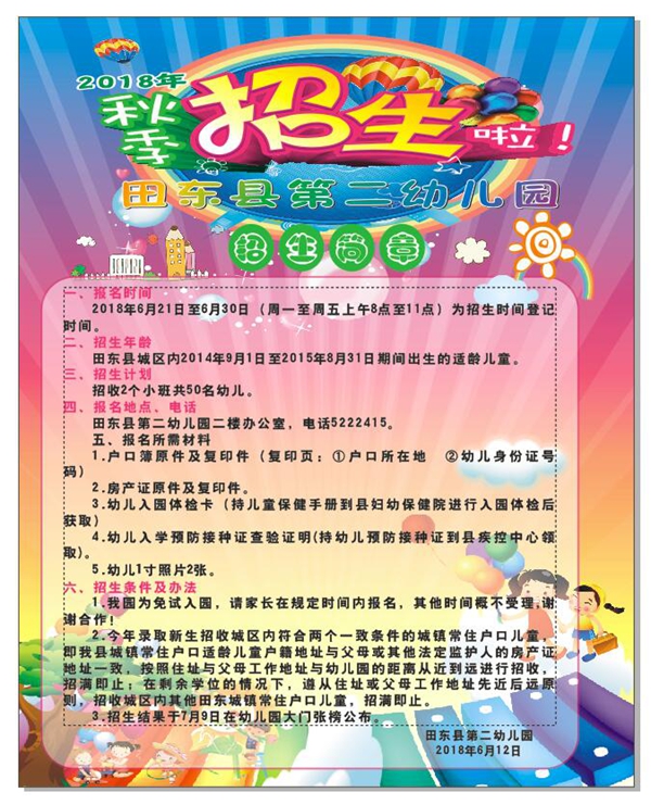 ·田东二幼2018年秋季招生简章